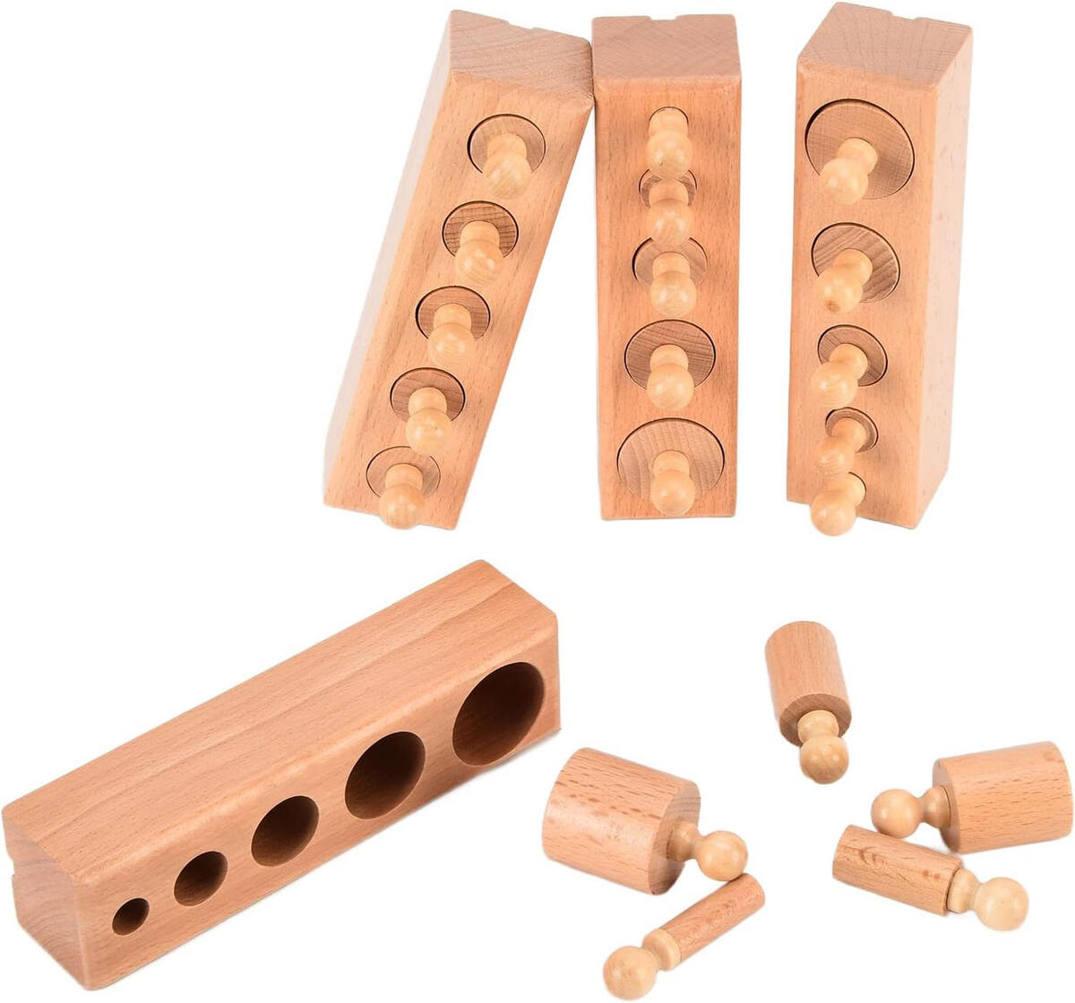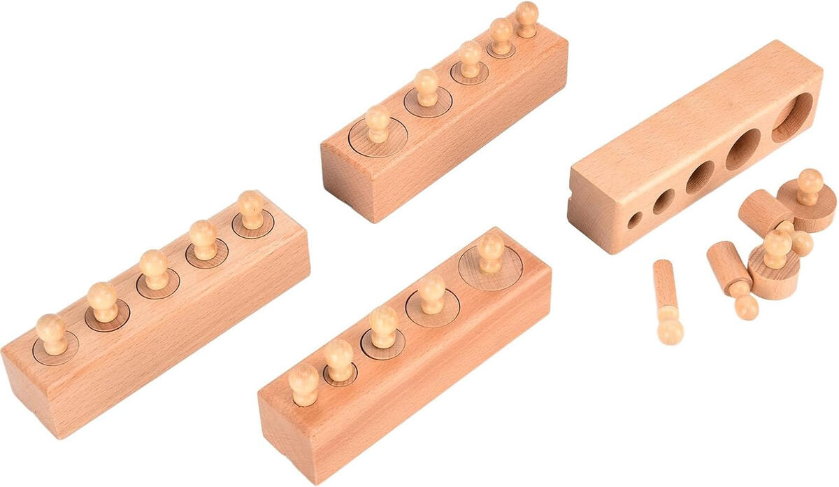 Product Name: Knobbed Cylinder Socket Wooden Educational ToyMaterial: Natural woodColor: Natural wood finishDesign: Ladder-style cylindrical socket with knobbed cylindersPieces Included: Multiple wooden cylinders with easy-grip knobsFunction: Size recognition, sorting, and matching